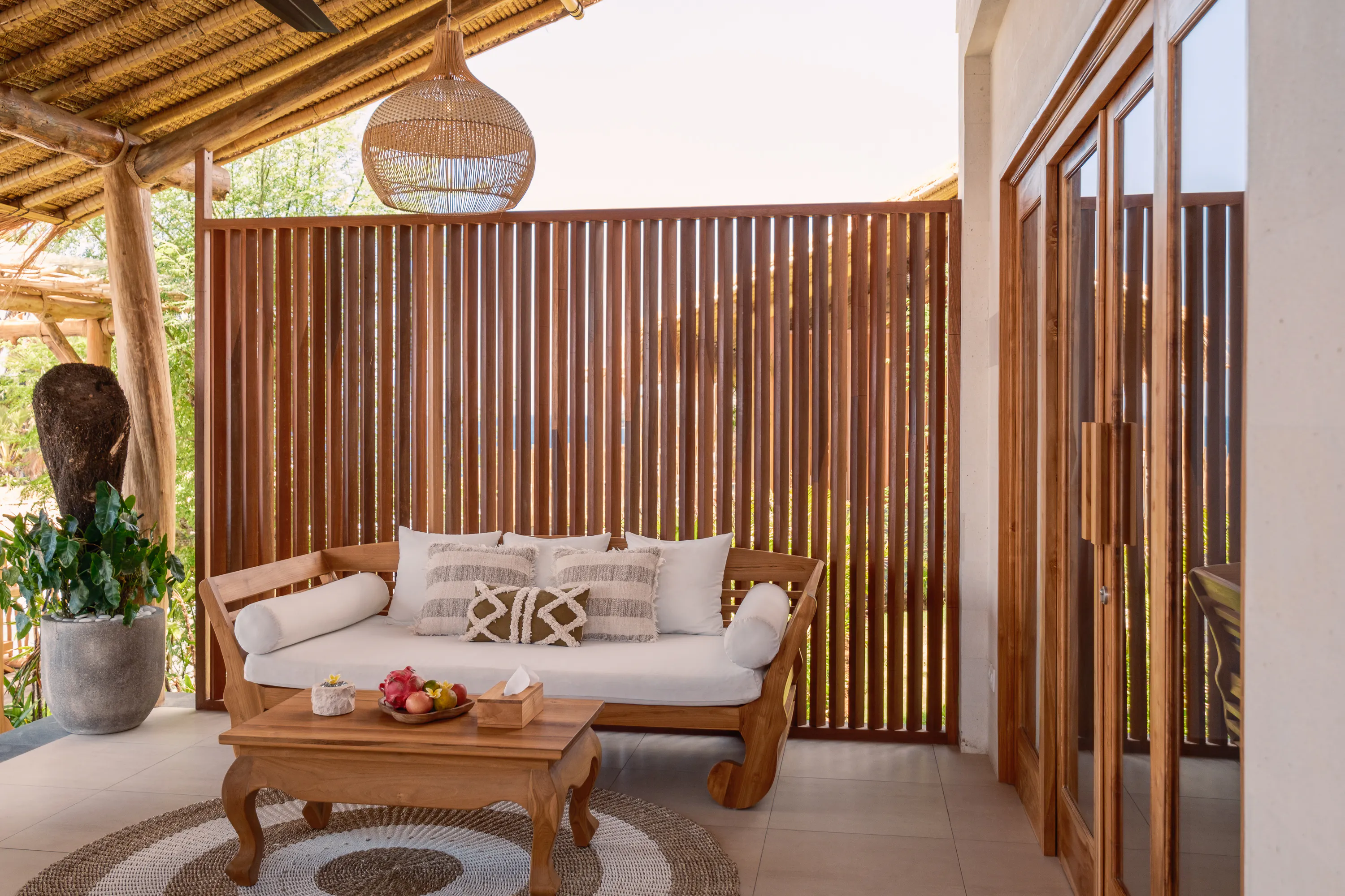 The fully equipped kitchenette includes a stovetop, refrigerator, toaster, and kitchenware for added convenience. Designed for comfort and relaxation, the villa also offers air conditioning, a private entrance, a modern bathroom, a flat-screen TV, and a tea/coffee maker. Enjoy the peace and beauty of East Bali in this serene seaside retreat.